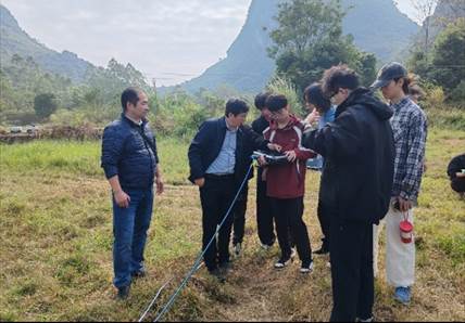 2025年10月29日,学院党委书记陈小波、副院长王洪华、付伟和有色及贵金属隐伏矿床勘查教育部工程研究中心副主任张智一行前往桂林马面实习基地,亲切看望慰问正在此地开展野外实习的勘查技术与工程专业师生。bwin必赢领导考察了野外工作环境,现场观摩学生仪器操作、数据采集全过程,并与带队教师以及学生亲切交流,详细了解野外实习进展以及实习过程中遇到的困难与挑战。